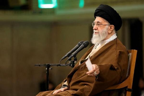 Pemimpin Tertinggi Iran Ayatollah Ali Khamenei saat pertemuan dengan para pakar industri pertahanan di Teheran, Iran, 12 Februari 2025. WANA via REUTERS
