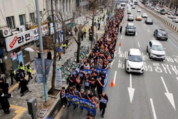 Dokter Korea Selatan berbaris ke Kantor Kepresidenan untuk memprotes kebijakan medis pemerintah di Seoul, Korea Selatan, 25 Februari 2024. Foto: REUTERS
