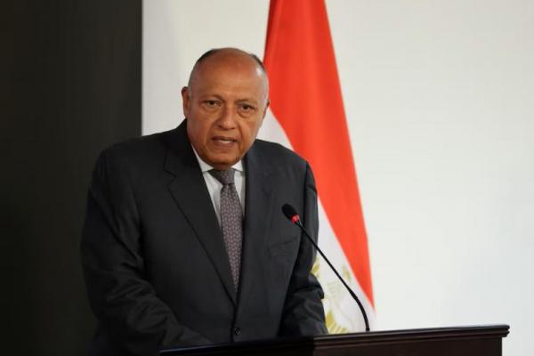 Menteri Luar Negeri Mesir Sameh Shoukry berbicara kepada media, di Kairo, Mesir, 18 Maret 2024. REUTERS