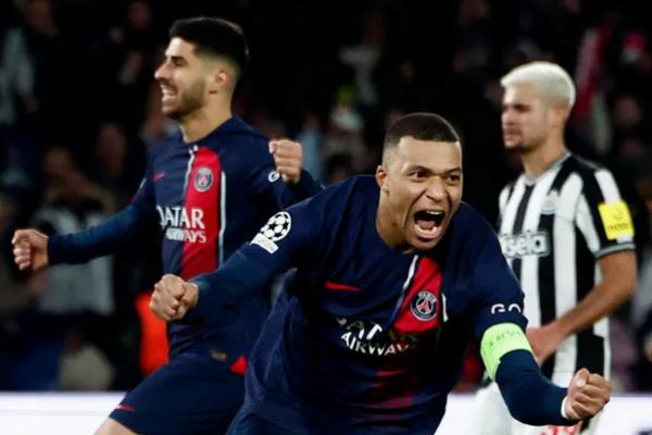 Kylian Mbappe dari PSG melakukan penalti kontroversial di menit-menit akhir pertandingan melawan Newcastle United. (FOTO: REUTERS)