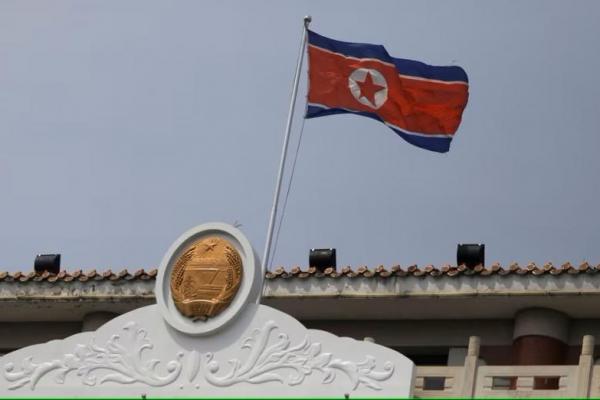 Bendera Korea Utara berkibar di kantor konsuler Korea Utara di Dandong, provinsi Liaoning, Tiongkok 20 April 2021. Foto: Reuters