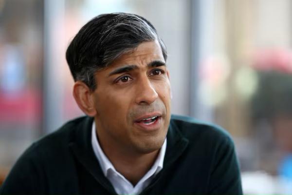 Perdana Menteri Inggris dan pemimpin Partai Konservatif, Rishi Sunak berbincang dengan awak media di pusat taman di Crawley, Inggris, 10 Juni 2024. Foto via REUTERS