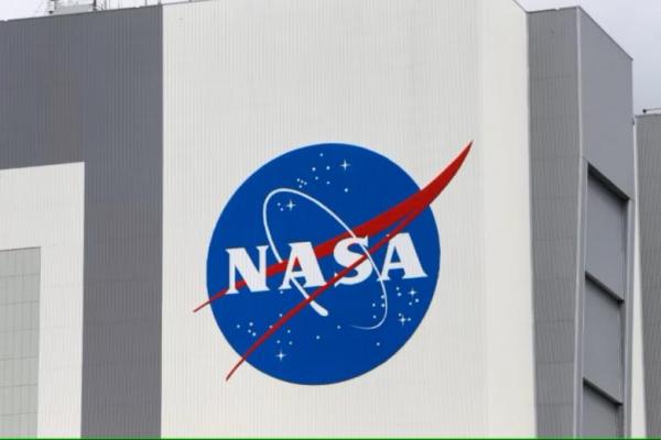 Logo NASA terlihat di Kennedy Space Center menjelang peluncuran misi kru komersial NASA di Cape Canaveral, Florida, AS, 16 April 2021. REUTERS