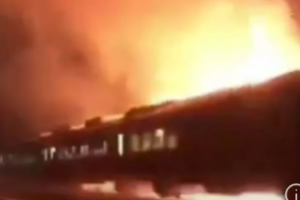 Kereta menerobos kobaran api (foto:Antara/KAI Daop 1 Jakarta)