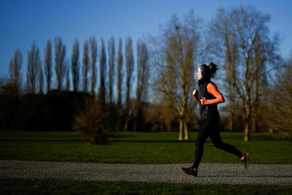 Seorang wanita joging di taman di Saint-Sebastien-sur-Loire dekat Nantes, Prancis 19 Januari 2024. REUTERS