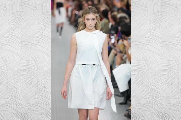 Sunday, merupakan putri dari Nicole Kidman bersama suaminya Keith Urban, tampil di panggung peragaan busana mengenakan gaun putih tanpa lengan dengan detail pita di bagian leher dan hiasan lubang tali.
