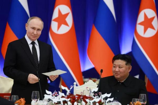 Kantor berita Interfax mengatakan Putin pada hari Senin menyerahkan kepada majelis rendah parlemen Duma Negara sebuah teks tentang pengesahan perjanjian kemitraan strategis dengan Korea Utara. Dikatakan bahwa teks tersebut mengatur agar masing-masing pihak memberikan bantuan militer jika terjadi serangan bersenjata terhadap pihak lain.