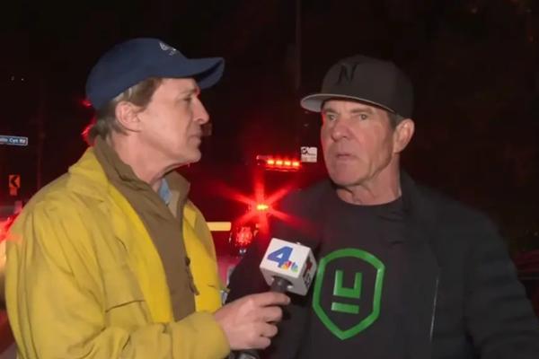Penggemar terkejut setelah seorang reporter NBC mengganggu upaya evakuasi Dennis Quaid saat kebakaran hutan Los Angeles mengancam rumahnya di Brentwood, California. (FOTO: NBC)