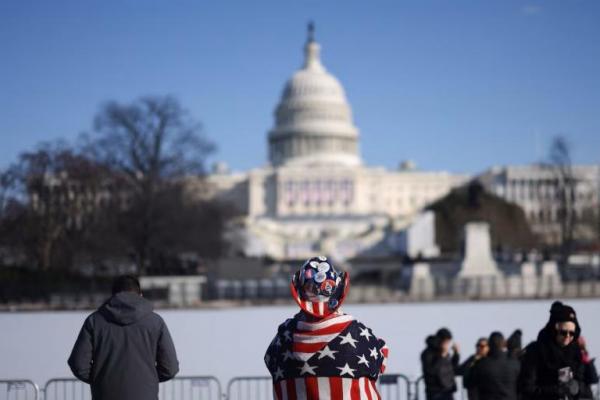 Orang-orang berdiri saat kolam belakang Gedung Capitol AS di Washington, AS, 17 Januari 2025. REUTERS