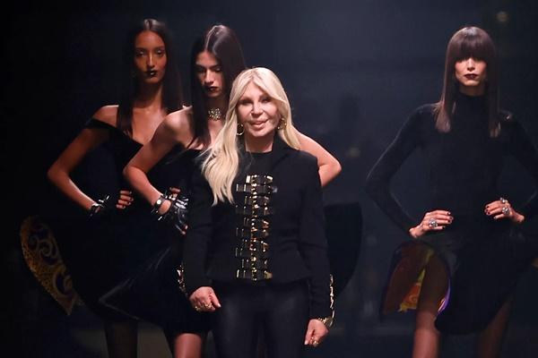 Perancang busana Donatella Versace melambaikan landasan pacu di peragaan busana Versace selama Milan Fashion Week - Pakaian Wanita Musim Gugur/Dingin. (FOTO: GETTY IMAGE)