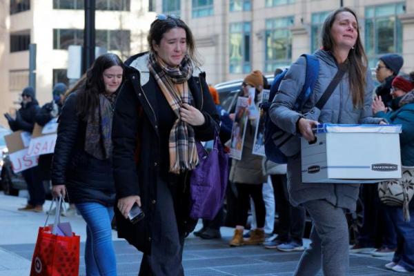 Staf Badan Pembangunan Internasional AS yang dipecat meninggalkan kantor USAID di Washington, AS, 21 Februari 2025. REUTERS