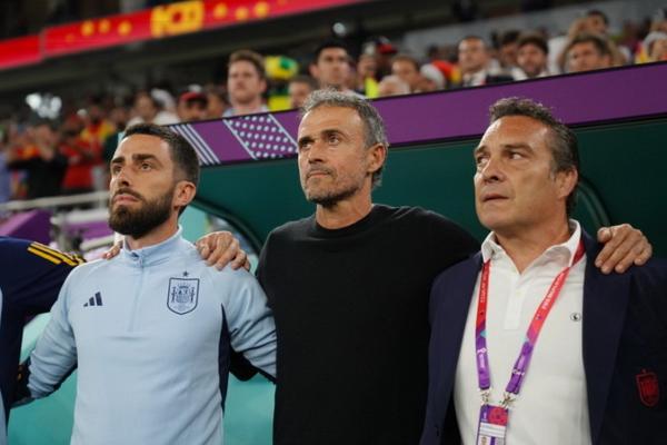 Luis Enrique (tengah) sebelum pertandingan Spanyol melawan Kosta Rika di Stadion Al Thumam. (FOTO: AL JAZEERA)