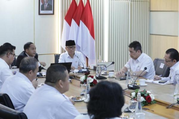 Jajaran Kementerian Desa dan Pembangunan Daerah Tertinggal (Kemendes PDT) saat audiensi bersama Menteri Kehutanan (Menhut) Raja Juli Antoni, di Kemenhut, Jakarta (Foto: Humas Kemendes PDT)