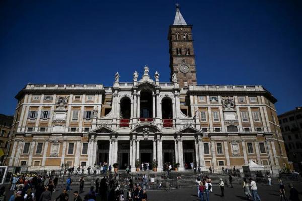Pandangan umum menunjukkan Basilika Santa Maria Maggiore, setelah kematian Paus Fransiskus, di Roma, Italia, 22 April 2025. REUTERS