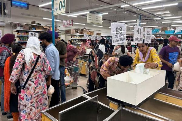 Orang berbelanja barang-barang penting di sebuah supermarket di Amritsar, India, 9 Mei 2025. REUTERS