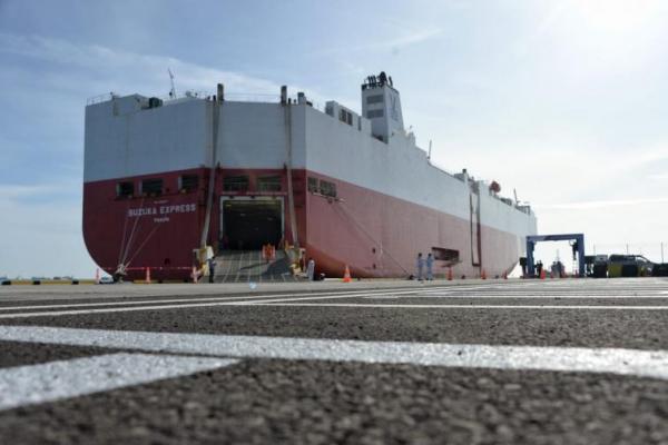 Kapal pengangkut kendaraan di Pelabuhan Patimban, Subang, Jawa Barat. Foto: bkip
