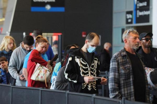 Penumpang pesawat pada akhir pekan lalu di bandara Boston, ada yang mengenakan masker dan banyak yang tidak pakai masker. Foto: Reuters