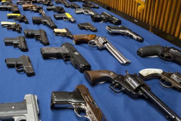 Senjata ilegal yang disita ditampilkan selama konferensi pers di Markas Besar Kepolisian Kota New York (NYPD) di New York, 27 Oktober 2015. Foto: Reuters