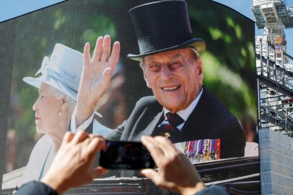 Sebuah layar di Piccadilly Circus menampilkan gambar Pangeran Philip Inggris, suami Ratu Elizabeth. Foto: Reuters