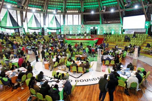 Delegasi dan pejabat partai politik dan Komisi Pemilihan bertemu di pusat penghitungan nasional di Bomas, Kenya. Foto: Reuters