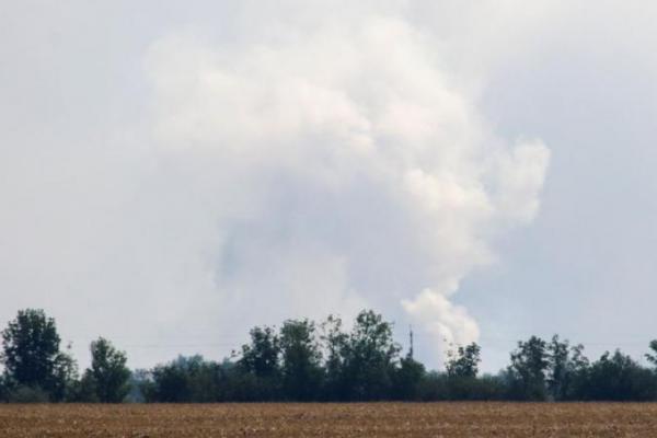 Asap membubung menyusul dugaan ledakan di desa Mayskoye di distrik Dzhankoi, Krimea, 16 Agustus 2022. Foto: Reuters