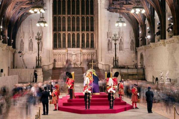 Sudah puluhan ribu orang dari semua lapisan masyarakat dari Inggris dan seluruh dunia telah dengan sabar mengantri berjam-jam untuk kesempatan melewati peti mati, dengan garis yang membentang hampir 5 mil (8 km).