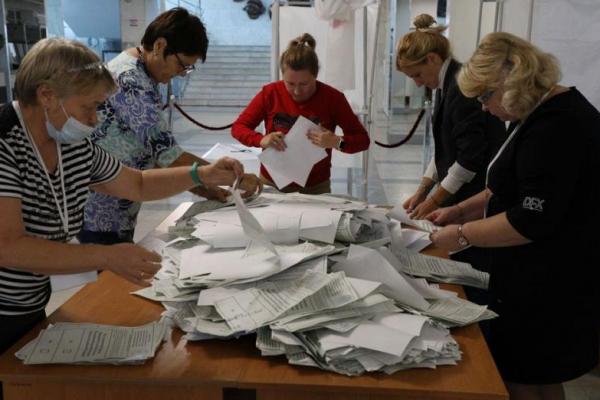 Anggota komisi pemilihan lokal menghitung surat suara setelah referendum di Sevastopol, Krimea 27 September 2022. Foto: Reuters