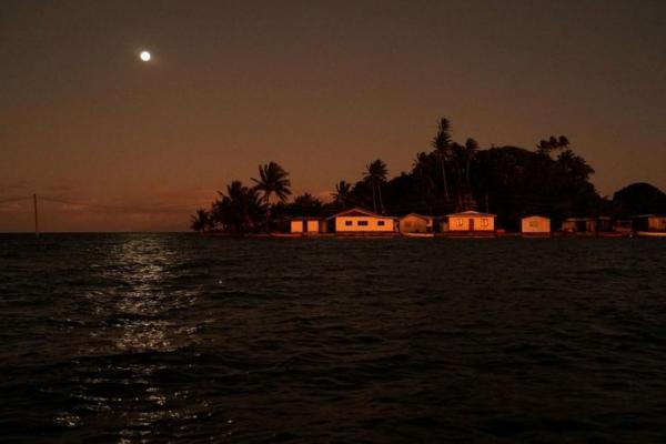 Bulan terbit di atas Desa Serua, Fiji, 13 Juli 2022. Foto: Reuters