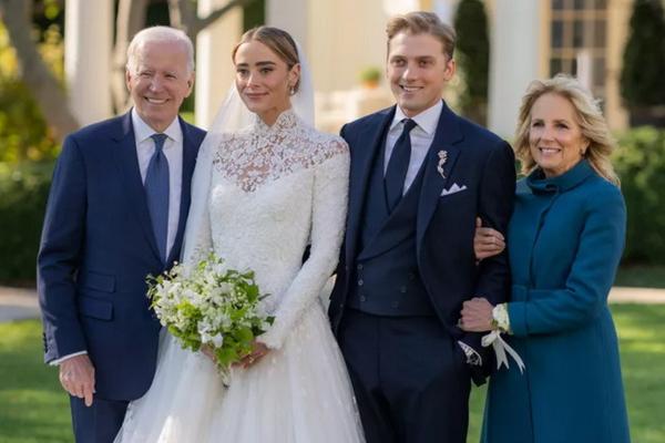 Pasangan itu menikah dalam sebuah upacara pribadi di South Lawn, dihadiri oleh kakek-nenek Naomi, Presiden Joe Biden dan ibu negara Jill Biden.