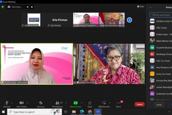 Wakil Ketua MPR RI, Lestari Moerdijat pada peluncuran secara daring buku Panduan Navigasi bagi Pasien Kanker Payudara yang diinisiasi oleh Cancer Information & Support Center Association (CISC), Selasa (29/11).