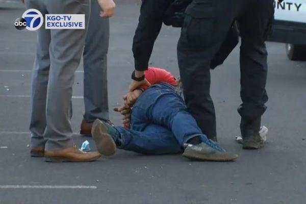 Video di ABC 7 dari Bay Area menunjukkan penangkapan ketika dua pria berpakaian preman dan seorang wakil berseragam, dengan senjata terhunus, memerintahkan pria itu keluar dari mobilnya. Tersangka keluar, dilempar ke tanah dan digeledah senjata. Beberapa petugas berseragam dengan cepat tiba di tempat kejadian dengan senjata panjang.