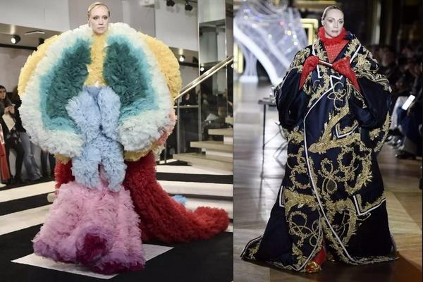 Konpeksi, dijuluki "The Queen," menampilkan kerutan di sekelilingnya, mulai dari siluet bahunya yang kuat hingga kereta halusnya.