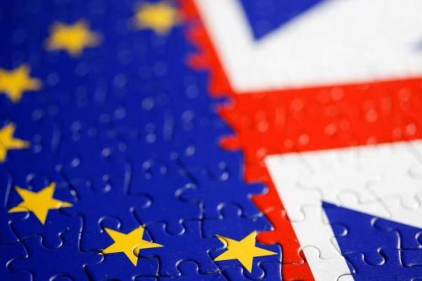 Puzle dengan gambar bendera Uni Eropa dan Inggris terlihat dalam ilustrasi ini yang dibuat pada 13 November 2019. Foto: Reuters