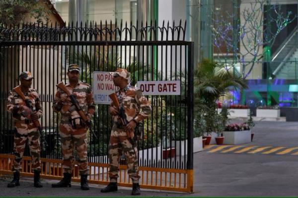 Anggota Polisi Perbatasan Indo-Tibet berjaga di luar gedung kantor BBC di New Delhi, India, 15 Februari 2023. Foto: Reuters