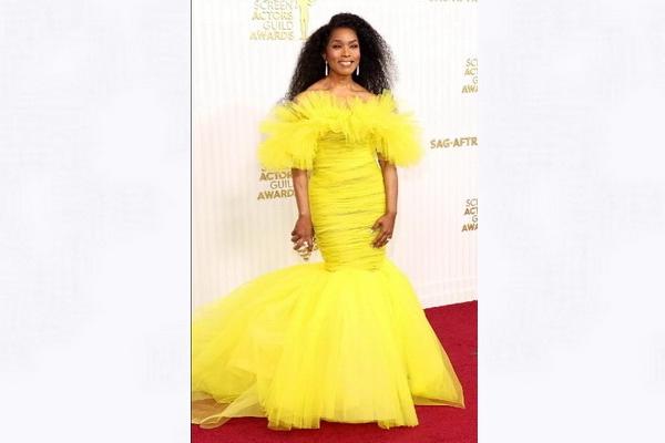 Angela Bassett keluar pada hari Minggu (26/2/2023) dengan gaun kuning cerah yang dirancang oleh Giambattista Valli Couture dan ditata oleh Jennifer Austin.