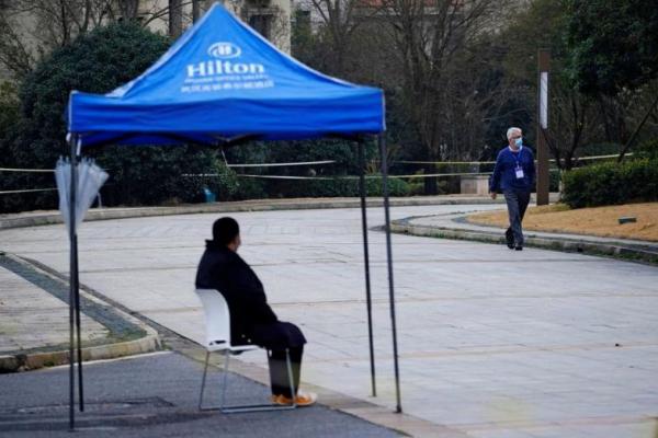 Dominic Dwyer, anggota tim Organisasi Kesehatan Dunia WHO berjalan di hotel mereka di Wuhan, provinsi Hubei, China, 6 Februari 2021. Foto: Reuters
