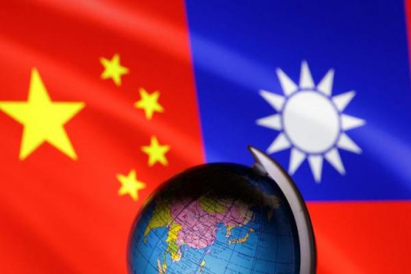Ilustrasi: bola dunia di depan bendera China dan Taiwan, 6 Agustus 2022. Foto: Reuters