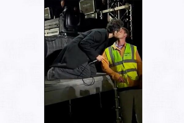 Vokalis 1975 itu mencium bibir seorang petugas keamanan (satpam) pria saat konser di Denmark awal pekan ini di tengah rumor jalinan asmaranya dengan Taylor Swift.