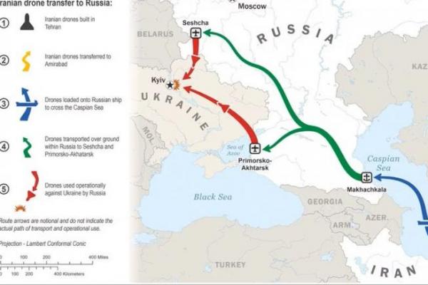 Mengutip informasi yang baru dideklasifikasi, Gedung Putih mengatakan drone, atau Uncrewed Aerial Vehicles (UAV), dibuat di Iran, dikirim melintasi Laut Kaspia dan kemudian digunakan oleh pasukan Rusia melawan Ukraina.