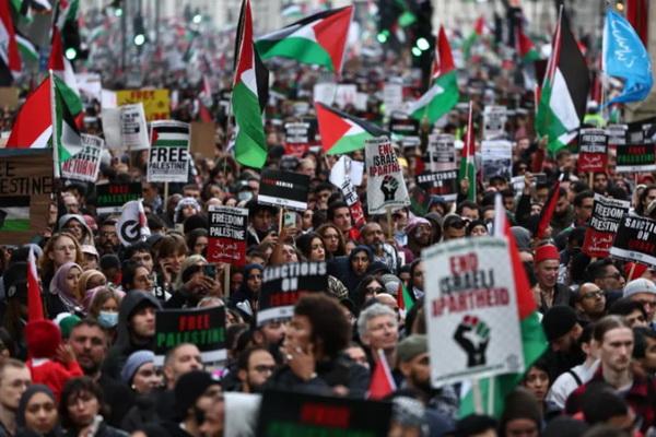 Ribuan orang mengambil bagian dalam protes di London sebagai bentuk solidaritas terhadap rakyat Palestina.