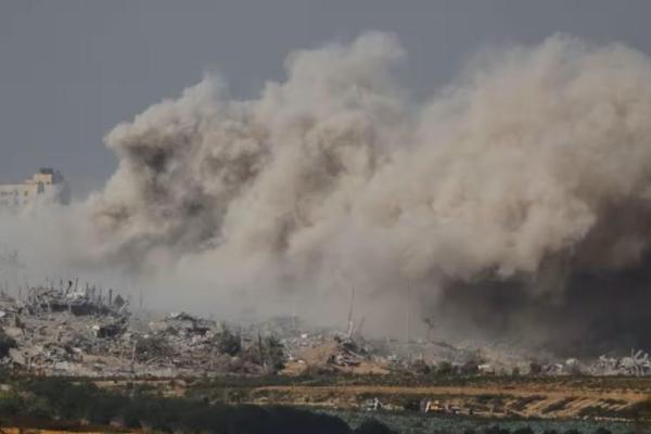 Asap mengepul setelah serangan udara Israel di Gaza, terlihat dari Israel selatan, 19 November 2023. Foto: Reuters