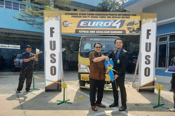 JAKARTA - PT. Krama Yudha Tiga Berlian Motors (KTB), distributor resmi kendaraan Mitsubishi Fuso di Indonesia, mendonasikan 1 (satu) unit Mitsubishi Fuso Canter FE 74 L yang didukung teknologi EURO 4 untuk menunjang kegiatan belajar mengajar ke SMK Assalaam Bandung, pada hari Jumat, (22/12/2023).