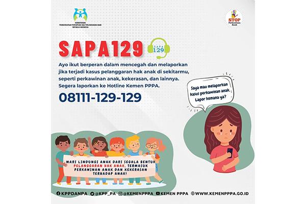 Kementerian Pemberdayaan Perempuan dan Perlindungan Anak Republik Indonesia menegaskan pentingnya masyarakat Indonesia mengetahui SAPA 129.