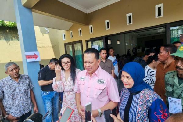 PURBALINGGA - Ketua MPR RI sekaligus Wakil Ketua Umum Partai Golkar Bambang Soesatyo mengucapkan selamat atas kemenangan Prabowo - Gibran sebagai Presiden - Wakil Presiden RI periode 2024-2029, berdasarkan hasil quick count dari berbagai lembaga survei yang tergabung dalam Perhimpunan Survei Opini Publik Indonesia (PERSEPI), yang rata-rata memenangkan Prabowo - Gibran diangka 58-59 persen. Disusul Anies - Muhaimin di angka 24-25 persen, serta Ganjar - Mahfud MD diangka 16-17 persen.