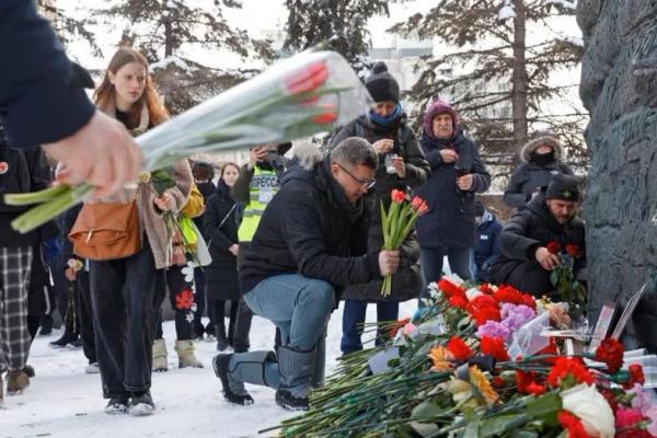 Pada peringatan "Tembok Kesedihan" di jalan yang dinamai menurut nama fisikawan dan pembangkang Soviet Andrei Sakharov, beberapa orang Rusia meletakkan bunga di samping foto Navalny. Salah satu pesannya berbunyi: "Kami tidak akan melupakan, dan kami tidak akan memaafkan."