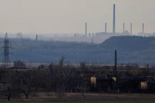 Area dekat Pabrik Kokas dan Kimia Avdiivka di kota Avdiivka seperti yang terlihat dari Yasynuvata di wilayah Donetsk, Ukraina yang dikuasai Rusia, 15 Februari 2024. Foto: Reuters