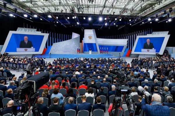 Saat berpidato di hadapan parlemen dan anggota elit negara lainnya, Putin, 71 tahun, mengulangi tuduhannya bahwa Barat bertekad melemahkan Rusia, dan ia menyatakan bahwa para pemimpin Barat tidak memahami betapa berbahayanya campur tangan mereka dalam urusan dalam negeri Rusia yang dianggapnya sebagai urusan dalam negeri.