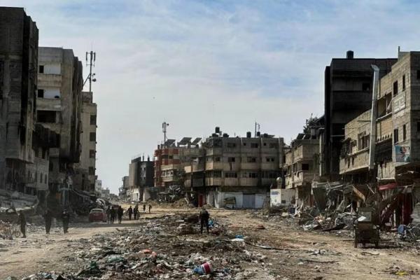 Orang-orang berjalan di dekat rumah-rumah yang rusak di lingkungan Zeitoun setelah pasukan Israel mundur dari daerah itu, di Kota Gaza 1 Maret 2024. Foto: REUTERS