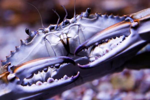 Seekor kepiting biru yang berasal dari perairan Samudra Atlantik bagian barat dan Teluk Meksiko dan ditangkap di Teluk Boka, Montenegro, 13 Maret 2024. REUTERS