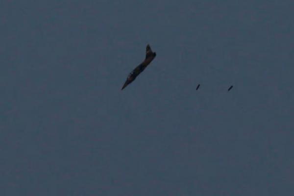 Sebuah pesawat perang melakukan pemboman di atas Suriah, terlihat dari Dataran Tinggi Golan yang diduduki Israel, Israel 24 Juli 2018. REUTERS